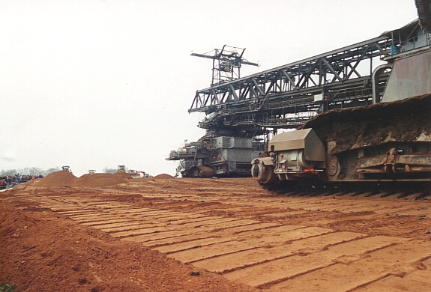 So seht Ihr irgendwas hinter dem großen Bagger, das ist ein Beladegerät.
